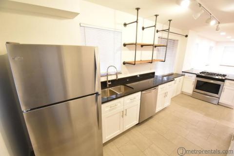Completely renovated 2 bedroom 2 bathroom home. Designed for the couple or single looking for a master suite but wanting an additional bedroom for guests or a private office. The second floor features a large bedroom, bathroom with custom ceramic tile shower, plenty of closet space, and sitting area. The first floor has an open floor plan with kitchen, bath and 2nd bedroom/office. Kitchen has all new cabinets, counter tops, and appliances. Large, full, usable basement with high ceilings includes washer/dryer. Hardwood floors throughout living areas and ceramic tile in bath and kitchen areas, central air conditioning, fenced yard and two car garage. Tenant is responsible for all utilities, gas, electric and water and sewer. Pet may be considered with additional fees.