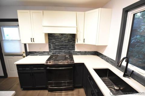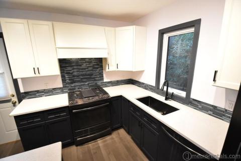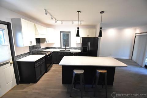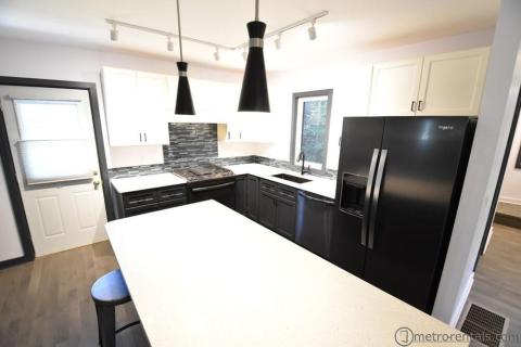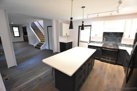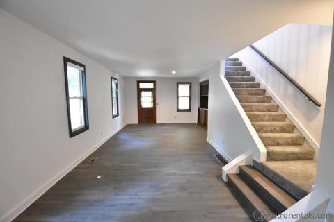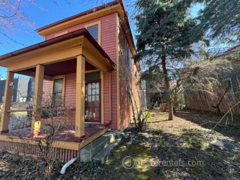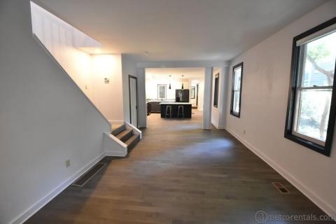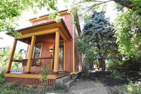 1880's single family home in Italian Village now enlarged to 2,000 sq. ft. after “to the studs” renovation has hardwood maple 1st floor, 15' x 30' front room with antique entertainment center opening to stairs, 1/2 bath & new addition: a stylish kitchen of black stainless steel appliances, Frost quartz counters, and indigo and cream toned cabinetry with island & adjacent seating area, pantry, mud room at back door & outdoor bike locker. Vented glass doors also open to 2 patios. Upstairs features carpeted asymmetric skylit master suite, windowed walk-in closet, room darkening shades, screened balcony, bath with shower spa, and radiant heated tile floor with additional guest bedroom and full bath, laundry with full size stacking washer/dryer, and 4 generous storage closets. Solar panels save on electric bills, separately zoned heat pump for upstairs addition supplements gas forced air HVAC. Off-street parking for 3 cars and permits for on-street parking, conveniently close to Short North, Downtown and OSU, five minutes to I-71 and I-670.