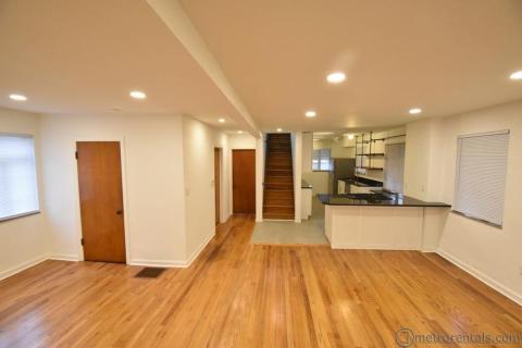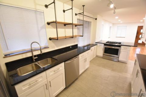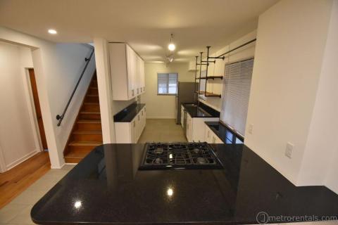 Completely renovated 2 bedroom 2 bathroom home. Designed for the couple or single looking for a master suite but wanting an additional bedroom for guests or a private office. The second floor features a large bedroom, bathroom with custom ceramic tile shower, plenty of closet space, and sitting area. The first floor has an open floor plan with kitchen, bath and 2nd bedroom/office. Kitchen has all new cabinets, counter tops, and appliances. Large, full, usable basement with high ceilings includes washer/dryer. Hardwood floors throughout living areas and ceramic tile in bath and kitchen areas, central air conditioning, fenced yard and two car garage. Tenant is responsible for all utilities, gas, electric and water and sewer. Pet may be considered with additional fees.